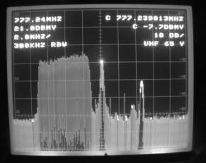 The picture on the right side records another frequently encountered interference problem. This time a grandfathered analog channel suffered from the adjacent Channel 64 power spectrum, resulting in very noisy pictures.