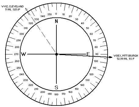 The chances of co-channel interference on Channel 50 are somewhat better, although it must be noted that the undesired Channel 50, Pittsburgh operates with an output power twice as high as desired Channel 50, Akron.